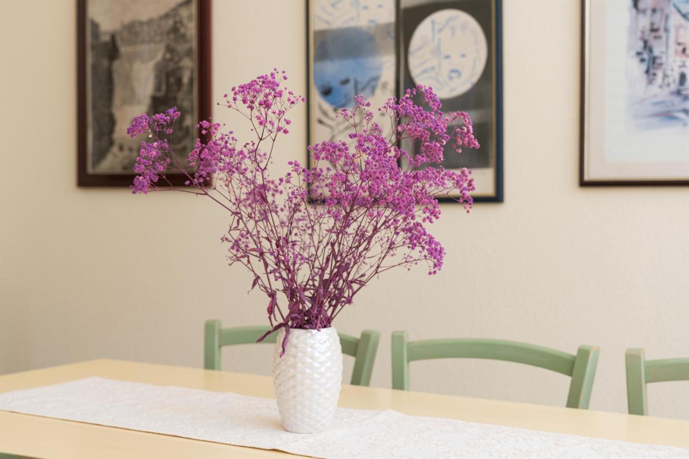 Three-Bedroom Premium Apartment with Balcony. Guests will have a special experience as this apartment provides a fireplace. Featuring a private entrance, this spacious apartment also is comprised of 3 separate bedrooms and 2 bathrooms with a shower and a hairdryer. Guests will find a dishwasher, kitchenware, an oven and a microwave in the well-fitted kitchen. The apartment also has a barbecue. Boasting a balcony with garden views, this apartment also offers a washing machine and a TV with cable channels. The unit offers 4 beds.